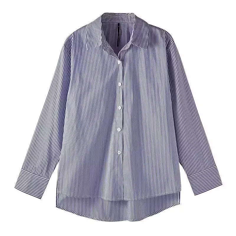 Adicione um toque de elegância atemporal e conforto ao seu guarda-roupa de primavera e outono com esta clássica blusa camisa listrada feminina. Com um design versátil que combina o charme das listras com o toque moderno da manga longa lanterna e a gola solta, esta blusa é perfeita para criar looks sofisticados e confortáveis para diversas ocasiões.